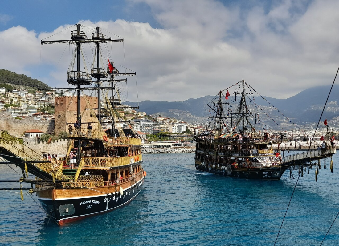 The Pirate Boat Trip in Alanya provides one of the most unique and incomparable experiences along the Turkish Riviera. This magnificent sea adventure takes you across the turquoise waters of the Mediterranean, driving them to hidden caves, spectacular beaches, and scenic views of Alanya's coastline.