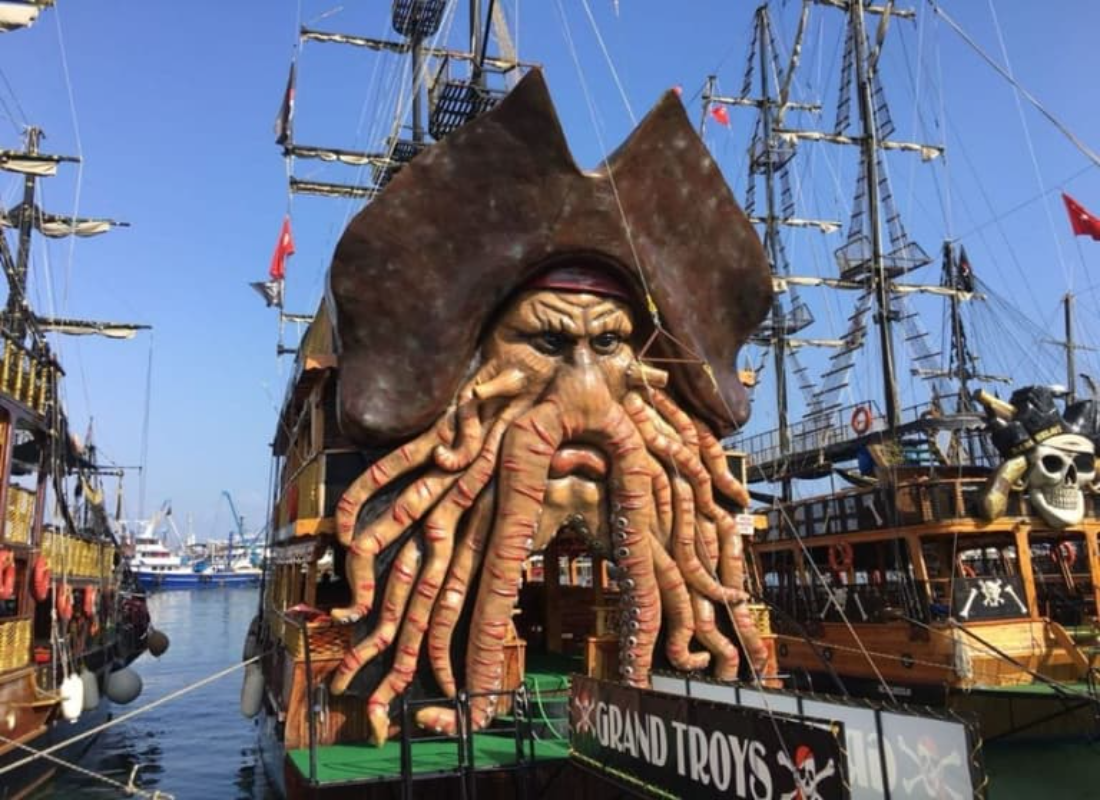 Swimming in Pirate, Phosphorus, and Lovers Caves Relaxing on the deck and enjoying the scenic coastal view On-board foam parties and games to be engaged in Diving into succulent board-made lunch Entertainment acts for kids and adults Go for the Alanya Pirate Boat Tour and enjoy some quality family fun